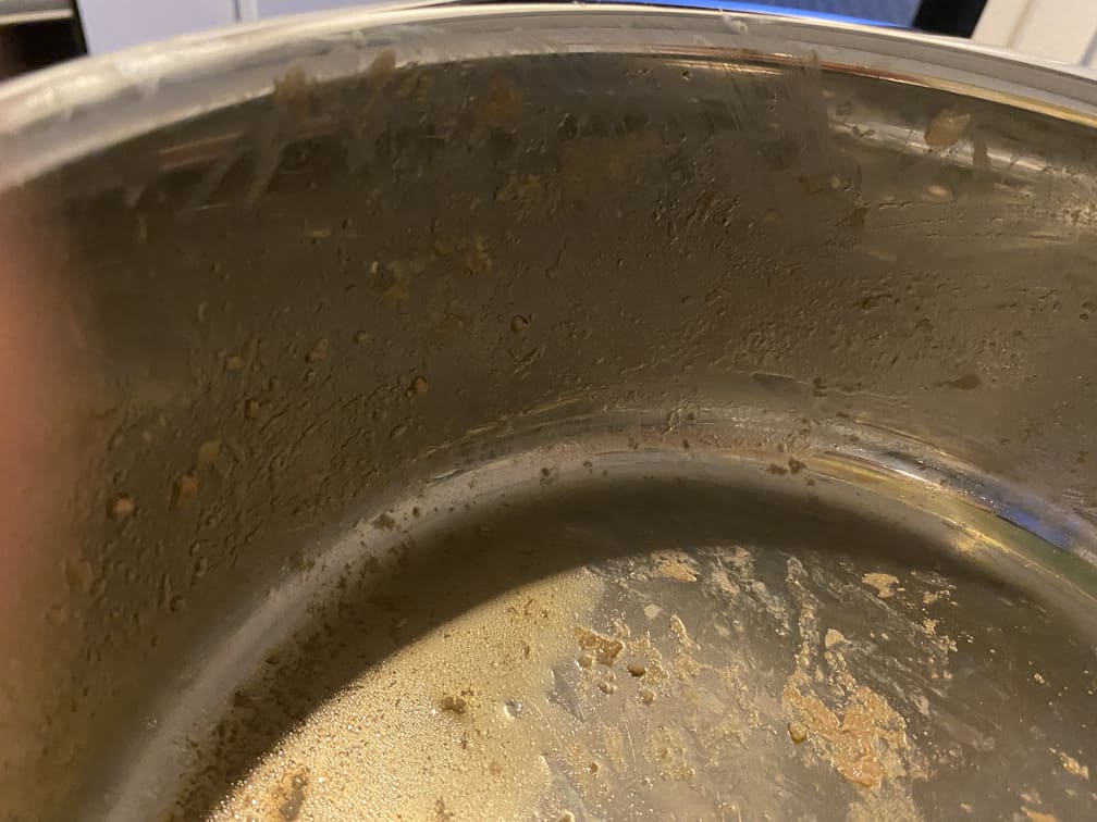 そして、あの鍋肌は調理後、こんな悲惨な状態に。イヤァ~。