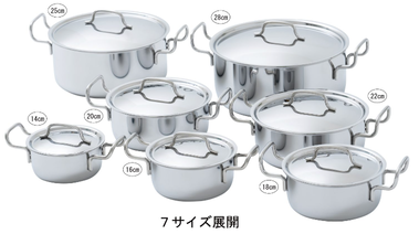 両手鍋 | 外側直径 | 高さ | 容量 | 重さ |