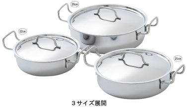 浅型両手鍋 | 外側直径 | 高さ | 容量 | 重さ |