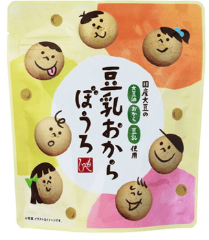 さくさく、ほろほろの食感で、お子さまでも食べやすいひと口サイズ。国産大豆の「大豆油、おから、豆乳」を使用した、まさに大豆づくしのおやつです。