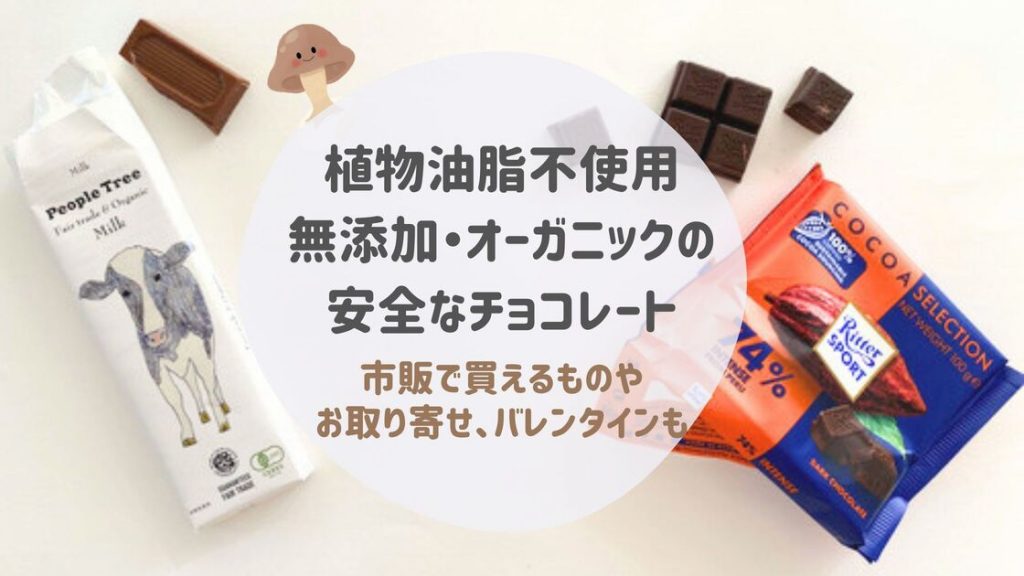スーパーやコンビニで買える、植物油脂不使用や無添加のチョコレートは少ないですよね~!がんばって市販のもの、取り寄せできるもの、安全な原材料のチョコレートをピックアップしてみました!